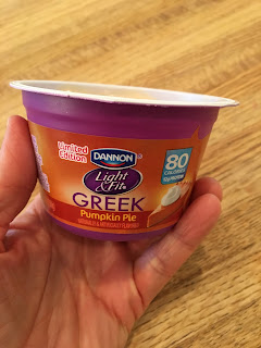 This is the Pumpkin Pie flavored, Dannon Light & Fit Greek yogurt.